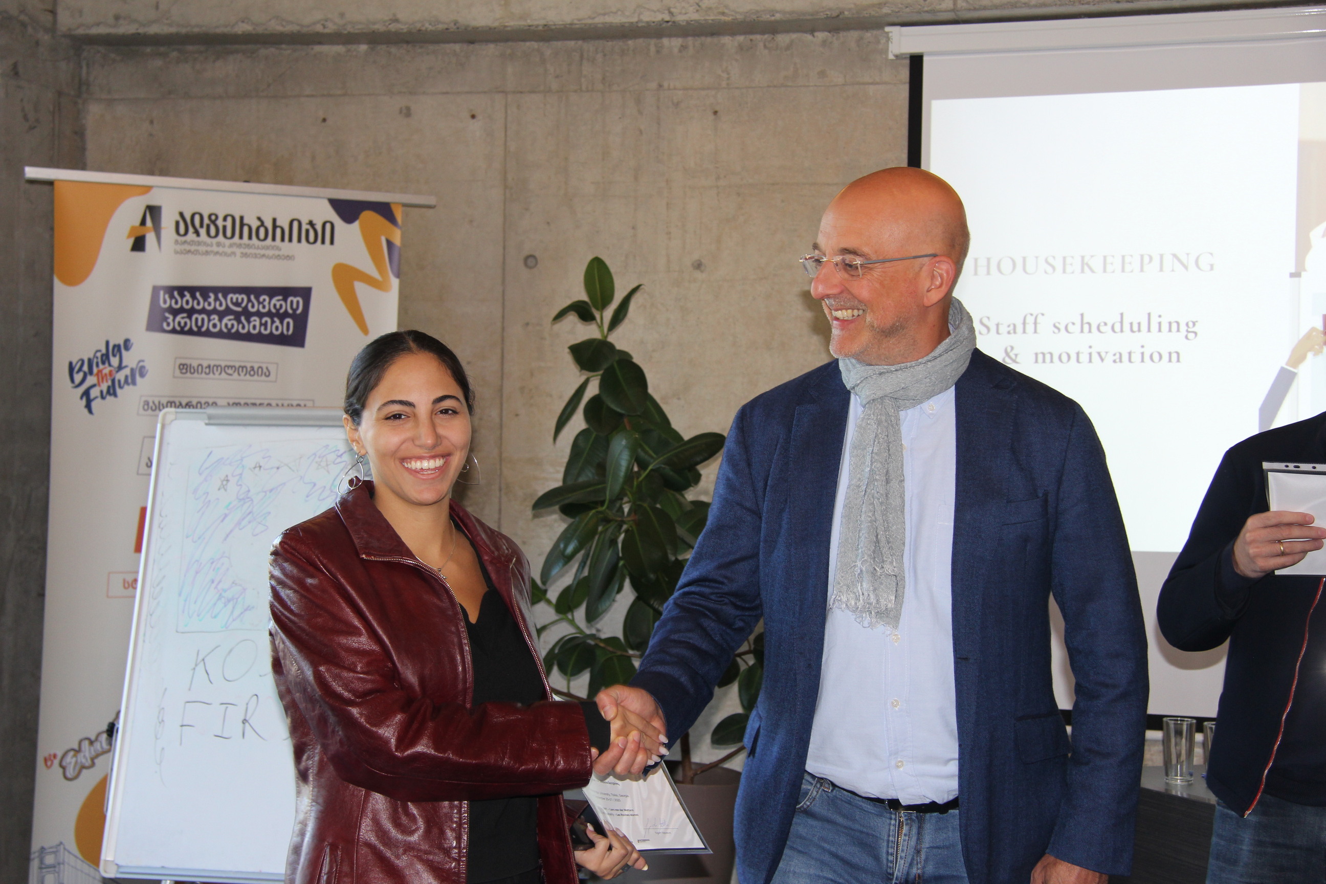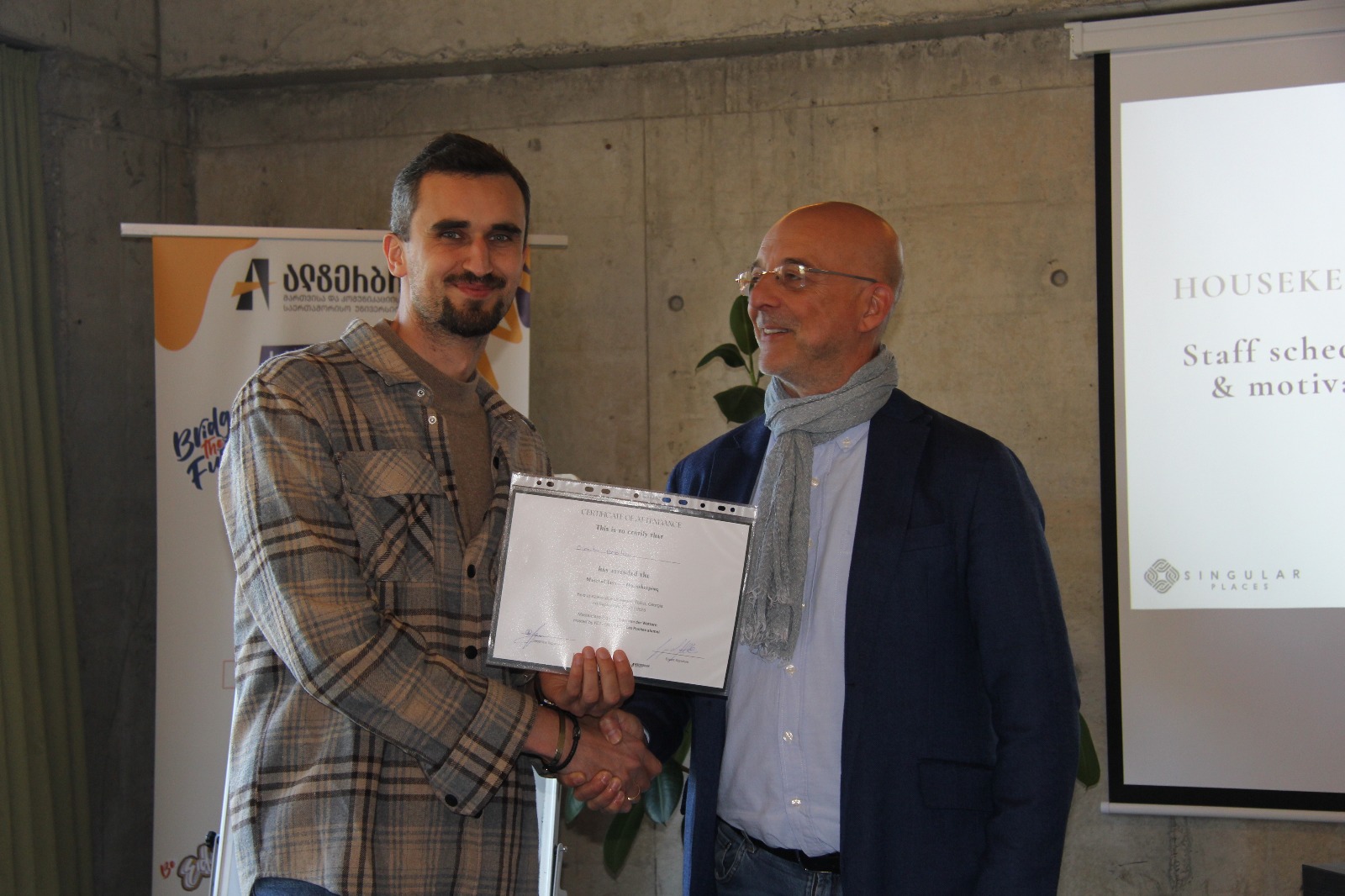 These two-day sessions provided hands-on training in hotel operations, guest services, and housekeeping excellence, introducing international standards adapted to the Georgian context. The program also supported staff from regional hotels, offering practical skills to elevate service quality across Tbilisi, Borjomi, Kakheti, Likani, and beyond. As a special gesture of recognition, participating staff received presents to celebrate their commitment to professional growth and continuous learning. With initiatives like these, KEI continues to bridge global knowledge and local talent, strengthening the hospitality workforce and fostering a sustainable, internationally competitive sector across Georgia.